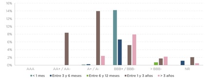 Como resultado final, el fondo tiene una duración de 1,18 años y un rating medio de los emisores de A-.
