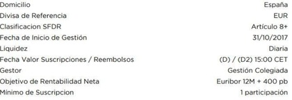 Puntos clave del fondo de inversión - Fuente: ficha comercial