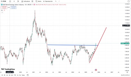 ¿Y ahora qué? En 2025 el sentimiento mejoró considerablemente, por lo que algo de exposición al sector biotech, sí puede merecer la pena como satélite diversificado, pero sabiendo que se trata de un sector cíclico. Por ende, merecerá la pena comprar en los mínimos de la nueva estructura del precio, y vender en los máximos, una vez el nuevo canal lateral, quede definido.