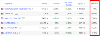 Es hora de analizar el crecimiento en los últimos años del SP500, estancada a excepción de la brutal subida de media docena de mastodontes digitales, los FAAANM: