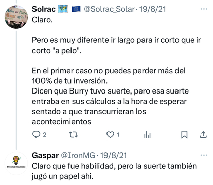 Nadie dice que burry fuera solo suerte pero si que tuvo suerte, sin ella habría fracasado y a pesar de su buen hacer no se habría consagrado como bien le dijo Gaspar
