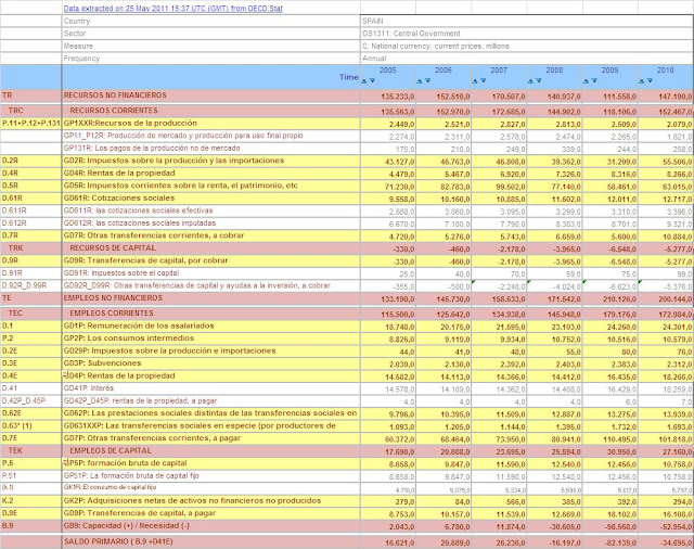 El Saldo Primario nunca fue suficiente en el período analizado para cubrir los gastos financieros de la Deuda (salvo en 2.006) y menos la amortización de la misma, pasando de 137 millones de € en 2.005 a -5.767 millones de € en 2.010.