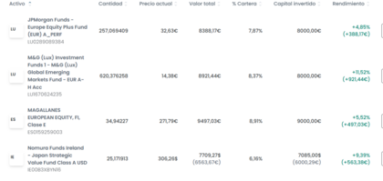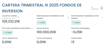 Presento la actualización de mi cartera de fondos para el cuarto trimestre de 2025, tras un tercer trimestre positivo (+6,23% de rentabilidad y una TIR acumulada del +27,46% desde inicio)