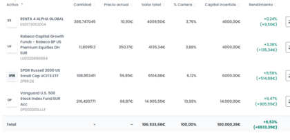 Por último, reduzco en dos puntos la posición en el Vanguard US 500, que compenso con un incremento en el SPDR Russell 2000, quedando este en un 8%.