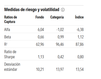 Los ratios del fondo no pueden ser más espectaculares tanto en rentabilidad como en medidas de riesgo.