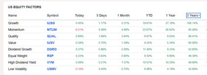 Aunque estoy seguro de que la composición de la cartera poco tendrá que ver con el índice, examinemos la rentabilidad del índice que replican a esta clase de acciones en USA.