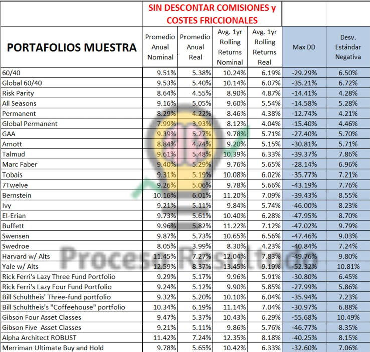 Retornos reales carteras indexadas modelo
