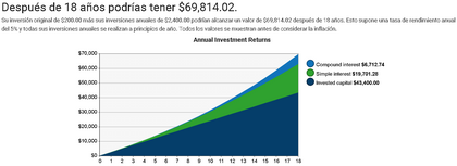 Supongamos que Pareja A decide invertir 200 €/mes desde el nacimiento del niño de 0 años, con una rentabilidad neta anual promedio de 5 %. En 18 años, ese capital puede crecer bastante ≈ 70.000 €.