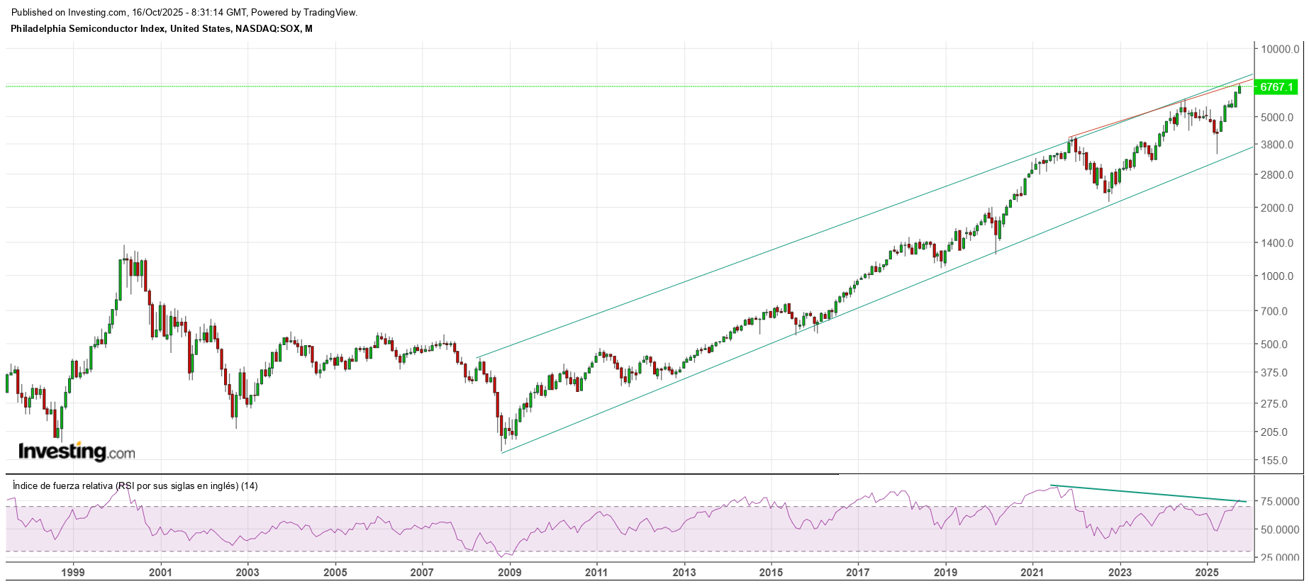 El dinero institucional está muy involucrado e invertido masivamente en la tendencia de los activos más «calientes» pero también en alerta, temiendo una sacudida procedente precisamente del sector de moda y excesivamente valorado, la inteligencia artificial, pero también del mercado de deuda corporativa, (tal como venimos explicando en posts recientes).