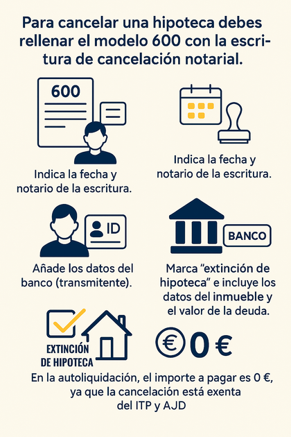 Paso a paso para rellenar el modelo 600 de cancelación de hipoteca