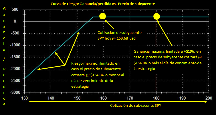 Sin embargo, como ya lo había mencionado, se trata de una estrategia riesgosa con pérdida posiblemente ilimitada si el subyacente empieza a caer. Por esta razón no podemos utilizar esta estrategia en cualquier mercado, la clave es seleccionar el activo subyacente adecuado, el momento oportuno y tener un plan de negocio / gestión de riesgo. ¿Cómo le puedo ayudar entonces si esta forma de trading le parece interesante?  Sobre todo, le recomiendo aprovechar todo el material gratuito disponible en mi página de internet www.opcionmaestro.com En mi libro electrónico La base de las opciones explico las definiciones básicas que utilicé en este artículo (precio de ejercicio, derecho/obligación, vencimiento, etc.).