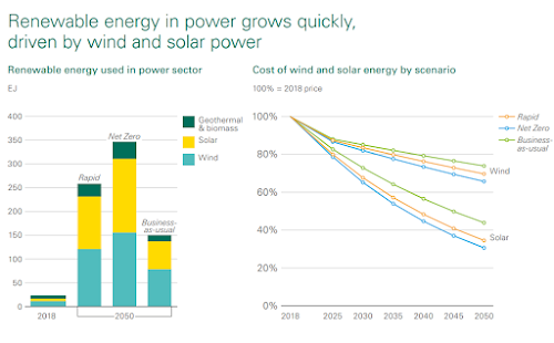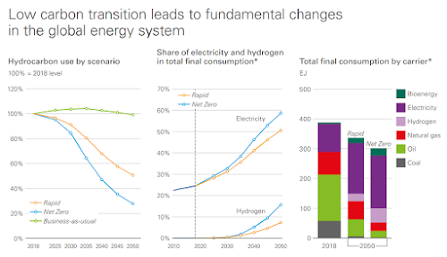 En el informe que sigue, BP apuesta por una electrificación de la economía apoyada en renovables. Es como si quisieran presentar la transición renovable del gran reinicio.