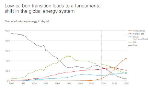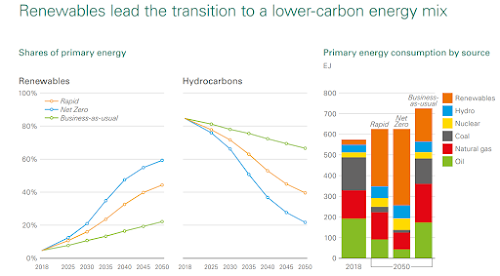 La parte de este reinicio que corresponde a la transición renovable ha sido tratada por autores como Mark Jacobsen. Ahora es una institución petrolera como BP, la que propone una transición acelerada con repercusiones en todo el sistema , hasta ahora basado en los combustibles fósiles.