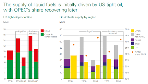 Muchos puntos del informe pecan de excesivo optimismo, y sobre todo destaco la incógnita en el periodo 2020-2030, donde la producción de petróleo caerá con fuerza, debido a muchos años de bajas inversiones y no se espera que la transición renovable pueda sustituir a la economía del petróleo en estos años.