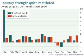 El hecho es que el efecto enero se produce año tras año incluso en años bajistas, aunque cada vez con menor fuerza y parece que centrado en las compañías más pequeñas. Y sea como sea, en general la mayoría de estudios parece indicar que no ofrece oportunidades de arbitraje, una vez descontadas las comisiones y gastos de la operativa.
