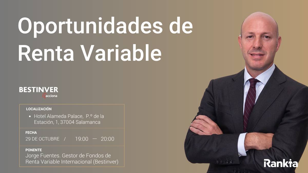 El miércoles 29 de octubre a las 19:00h tendrá lugar esta conferencia donde Jorge Fuentes Gestor de Renta Variable Internacional de BESTINVER, compartirá su visión y análisis profundo sobre las oportunidades de inversión en la renta variable internacional.