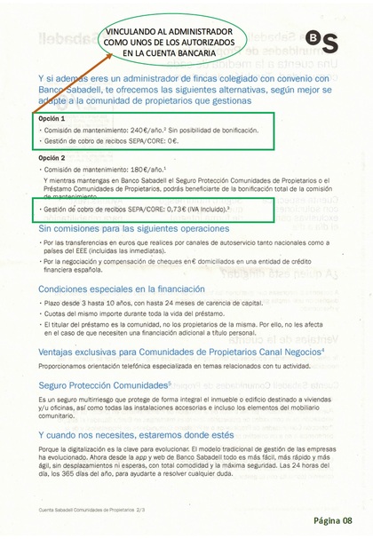para mi la opción menos mala de este banco es la de 240 € de comisión de mantenimiento y 0,73 € por emision de cada recibo, transferencias gratuitas, esto siempre que entre los autorizados de la cuenta figure un administrador colegiado