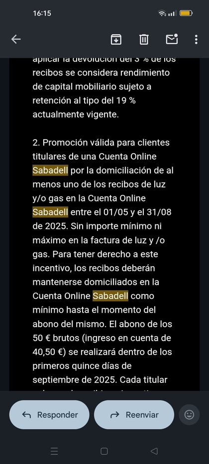 Re: Promoción Cuenta Online Sabadell. 300 €, 2,5% TAE y 3% en recibos. ¡FIN DE PROMOCIÓN! Hasta el 31/01/25