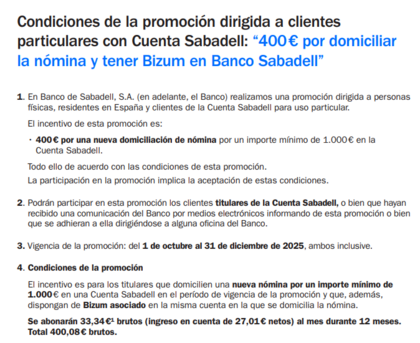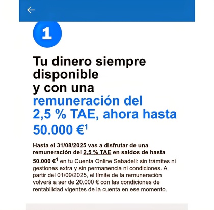 Re: Promoción Cuenta Online Sabadell. 300 €, 2,5% TAE y 3% en recibos. ¡FIN DE PROMOCIÓN! Hasta el 31/01/25