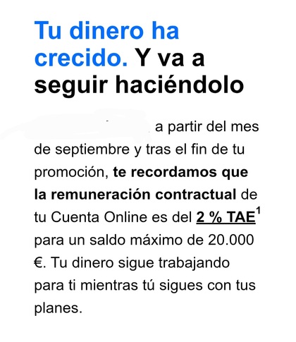 Me acaba de llegar el correo de que se me acaba el 2,5 y paso al 2% hasta 20k.