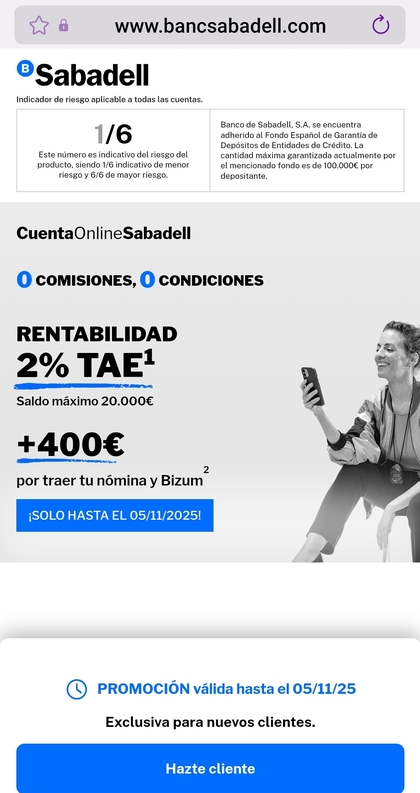 Re: Promoción Cuenta Online Sabadell. 400€, 2% TAE hasta el 05/11/2025