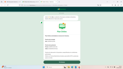PlanOnline Luego... pulso más abajo el botón de "Contrata Online" y me deriva al siguiente chat Box: