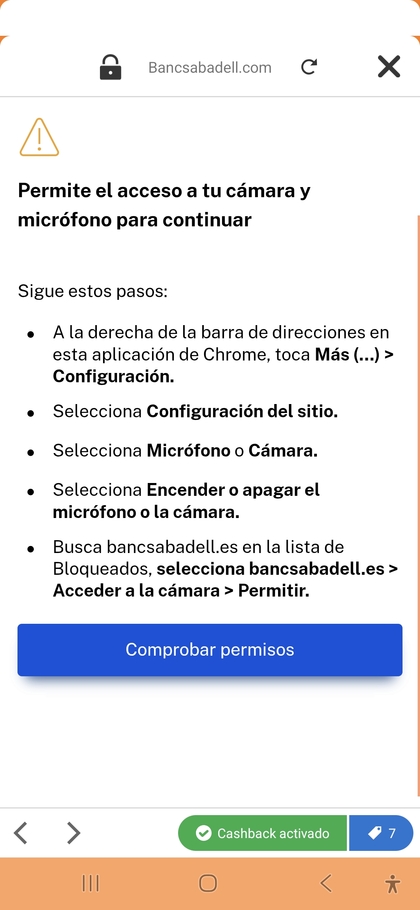 Has llegado a darte de alta con igraal? A mi no me deja avanzar en el punto de las fotos dni/selfie. Me dice que active los permisos y no tengo nada bloqueado, se me queda tal y como la imagen de abajo. He probado con 2 Androids (samsung y Xiaomi) y un iPhone (este último le doy a aceptar permisos y se sale la pantalla al escritorio). He probado a darme de alta sin Igraal y me deja hacerme la foto y el selfie.