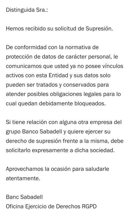 A mí me tardó muy poco en llegar la confirmación de cancelación, creo que al día siguiente de llamar por teléfono. Ahora creo que al haber pedido supresión de datos tendré que esperar a abrir con Igraal pero confío en que repitan que vienen ofertas fuertes en estas fechas!