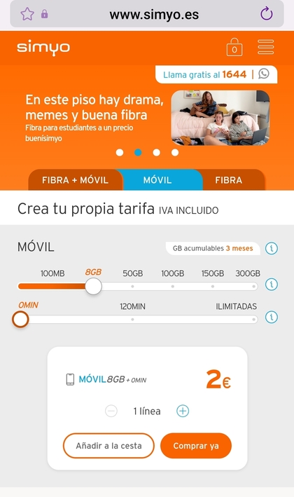 1. Llamar por teléfono a Simyo. Solicitar tarifa móvil de 1€. 100MB + 0 MIN. 2. Tramitarlo por la web de Simyo. Solicitar tarifa móvil de 2€. 8GB + 0 MIN.