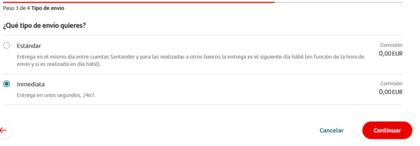 Una vez hecho lo anterior te salen las opciones de estándar e inmediata y tienes que seleccionar inmediata.