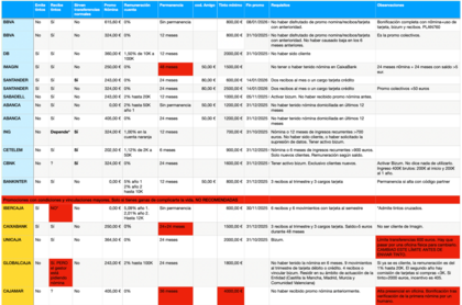 Aquí tienes la magnífica tabla de bodegas y tintos realizada por @gjose con todos los detalles de las promociones que hay disponibles y en la que entre otras muchas cosas, tienes unas filas en las que se indica los bancos que emiten y aceptan tintos: