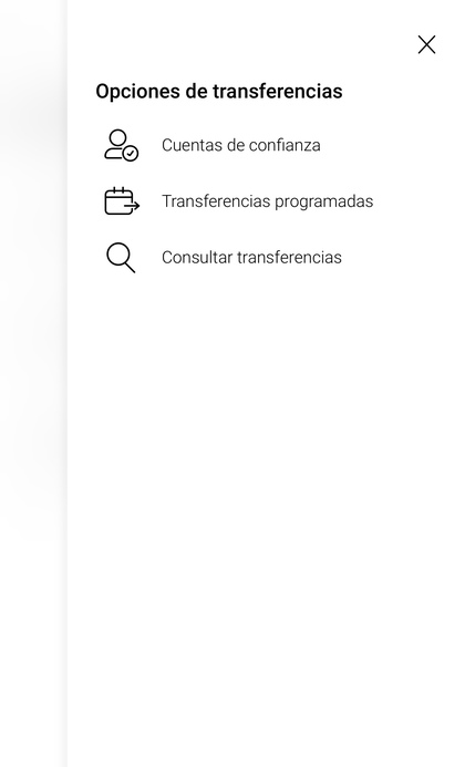 6. Para ver las transferencias programadas hechas EN EL PASADO, le damos a transferencias, y luego en la esquina superior a la derecha le damos a los tres puntitos y se abre esto: