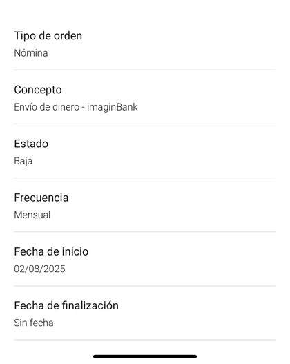 Como se puede ver, en TIPO DE ORDEN, salía NÓMINA. En concepto al no poner nada, salía eso por defecto “Envío de dinero-Imaginbank”