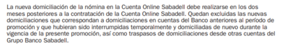 ¿El Banco Sabadell pide? Nómina. Para la promoción que tiene?