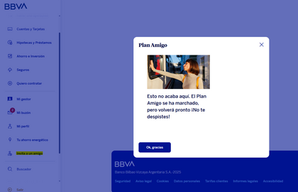 En caso afirmativo, tiene pinta de que tienes el último plan amigo contratado. A mí me sale esto (ver imagen de arriba), y nada más. Le doy al "Ok, gracias" o cierro la ventana con la 'X' y vuelve a la posición global.
