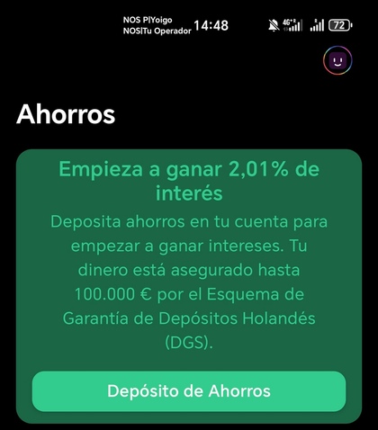 También tienes Bunq. Es un neobanco holandés, con cuenta gratuita y que además tiene varias promociones desde invitación : la que te puede interesar es una de una cuenta que te renta entre 2,01% a 3%, además de 50€ directos al abrirla si te invitan e ingresas 1000€.