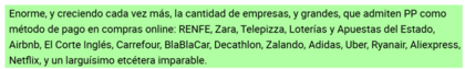 Además, si uno recargase saldo en PP por 400 euros con cargo a cuenta, pues es otra forma de retirar fondos alternativa a ordenar una transferencia de salida. Sería como 'matar 2 pájaros de un tiro' (genero recibo y -a los 2 días hábiles- ya se han retirado los fondos en ketedem que forman ahora parte del saldo de PP para seguidamente transferirlos gratis e inmediatamente desde PP a otra de mis cuentas vinculadas).