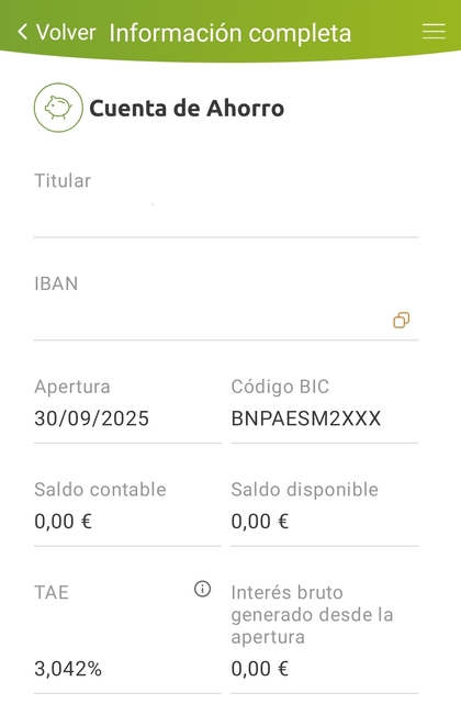 Como me quedan todavía por cobrar 4 promos de ingresos y 1 de recibos, o sea, hasta Enero, he probado a abrir otra cuenta de ahorro y voilà, ya está operativa. Otros 3 mesecitos al 3%.