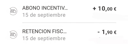 Independientemente de los 100€ y su función en ese caso en concreto, yo suelo dejar dinero 💰 en la cuenta para cuando ingresen los incentivos. Primero aplican la retención y después el ingreso. Si no hay dinero suficiente ya se ha fastidiado.