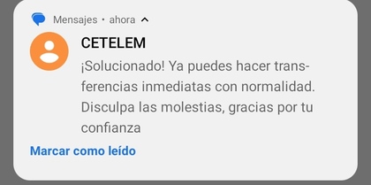 Os confirmo que acabo de recibir en destino la transferencia inmediata que falló el viernes y me descontaron el saldo (parece que la han hecho manual por el texto que veo en destino).