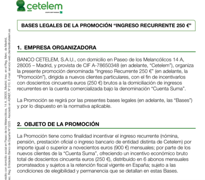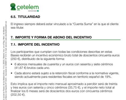 Re: Cuenta nómina Cetelen 250€ brutos