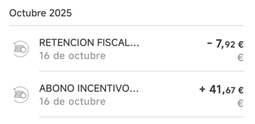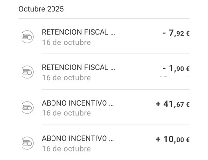 Muy bien, pues actualizando -de momento- la tabla resumen: Aquí también son 2 cuentas. En la mía OK, pero a la otra persona -al menos a esta hora y minuto- nada le han abonado y le correspondían los dos incentivos. Puede que a lo largo del día abonen al resto que está a la cola... Ya iremos viendo.