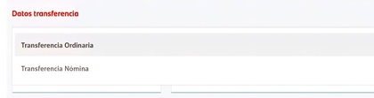 Las transferencias tipo n0mina en S4ntander solo se pueden hacer manualmente y desde la web siempre. Sigue los pasos normales para hacer una transferencia. Cuando llegues aquí 👇
