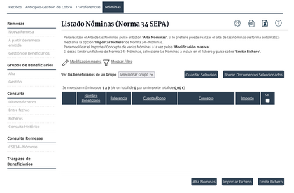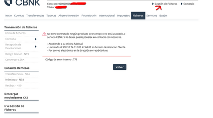 De inicio te dice que no lo tienes contratado... pero pulsando sobre la gestión de ficheros llegas a la gestión de remesas: