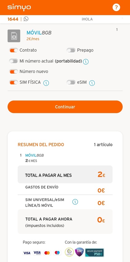 Ese es el mínimo necesario para recibir la tarjeta SIM en el domicilio. Cuando se reciba se modifica la tarifa a 0€/mes. Y de estos 2€ iniciales solo se pagará la parte proporcional de los días que faltan para cerrar el ciclo de factura de septiembre.