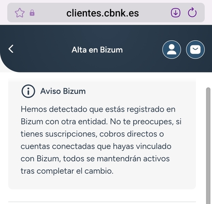Sigo sin poder acceder a la App y lo estoy haciendo por la web todo 🤦🏻♀️ Ya tengo la cuenta operativa, he hecho inmediata de 1€ y ahora estaba vinculando bizum, pero me aparece esto:
