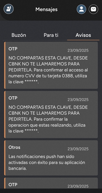 Las notificaciones push, que deberían sustituir los sms, activas! pero de momento son sólo informativas, me indica un texto similar al sms pero las claves vienen con asteriscos, me llega el sms igualmente... no se si será porque necesita un tiempo para el cambio y se autocorregirá o que la sim está en otro móvil y son sólo por alertarte de que hay movimientos... asi que la firma de todas las operaciones desde esta mañana las hice mediante SMS! 🔥🤓
