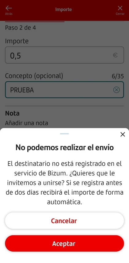 He realizado un amago de bizum y no aparece "enganchado" en bizum 🤗👏🎉🥳