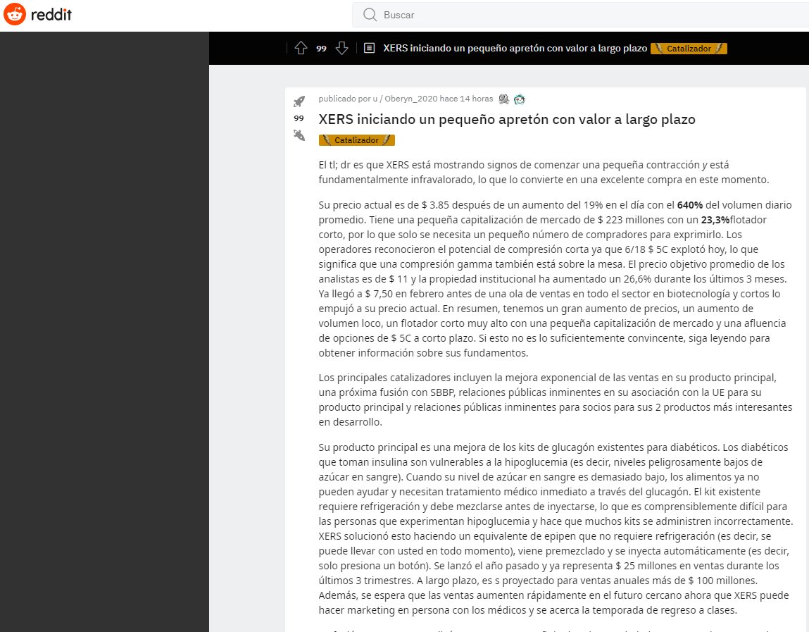 #73816 Re: Chicharros USA - bolsa internacional Alex_bolsa_eeuu Seguir 04/06/21 15:08 XERSEn el punto de mira de los reddit.Ayer un +19% hoy en el pre +14%............Volatilidad en estado puro!!! 4 Responder