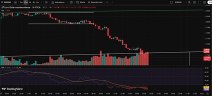 Hoy también hemos tenido una ruptura pronto, venia con mucha mecha pero mirando atrás, parecía una tendencia bajista clara con impulso y pullback, por lo que entramos como siempre, al principio se ralentizó pero enseguida vino un impulso grande que nos enseño que estábamos en el buen camino, tanto fue así que aunque aquí reflejo el cierre en 1.17650, en realidad aun sigo en la operación ajustando el SL y ya estoy en 1.17363 con seguridad.